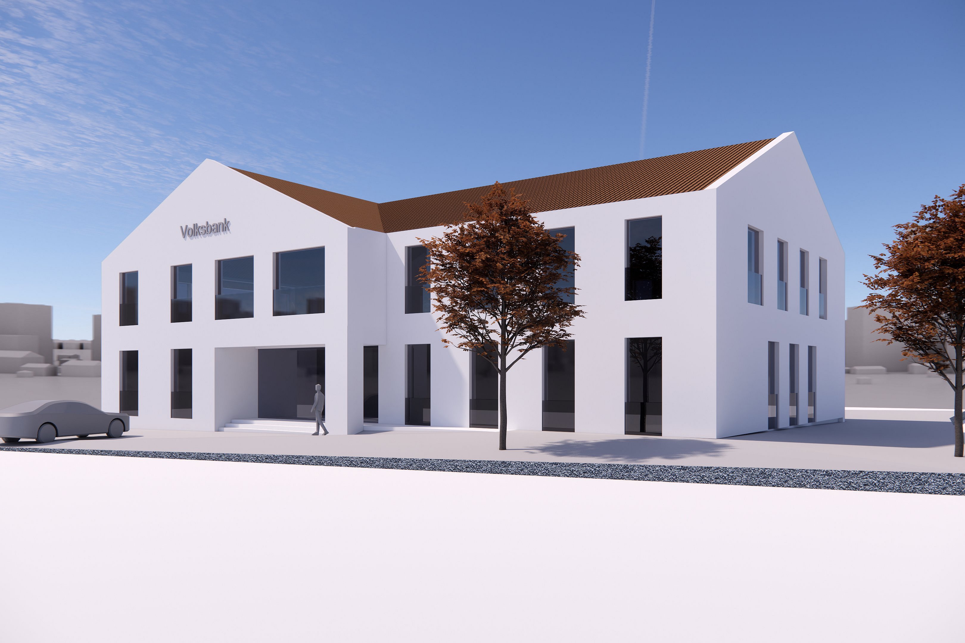 Im Variantenvergleich überzeugt ein Ersatzneubau trotz standortbedingter Risiken wie Radonbelastung und anspruchsvollem Baugrund: Ein Neubau mit ca. 1.200 m² Nutzfläche ermöglicht eine zeitgemäße Umsetzung der Nutzerbedürfnisse, energieeffiziente Betriebsmodelle und eine wirtschaftliche Nutzungskombination aus Gewerbe und Wohnen. Die Studie bietet der Bank eine klare strategische Entscheidungsgrundlage für die Entwicklung ihres Standorts.